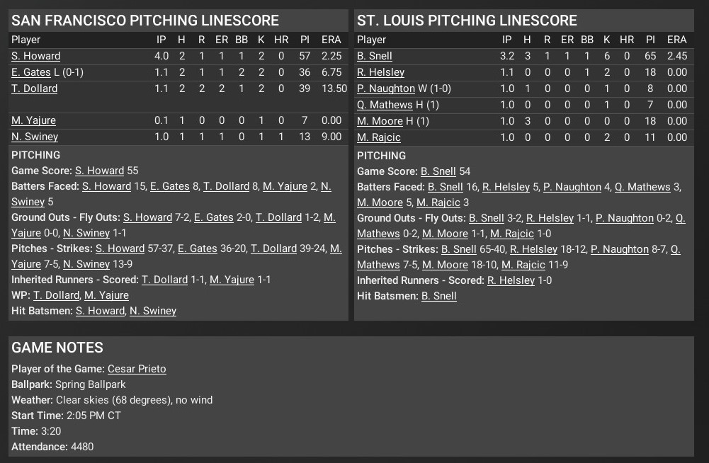 Cards news: February 29 -- Spring Training -- St. Louis Cardinals 5, San Francisco Giants 1, (1-0)