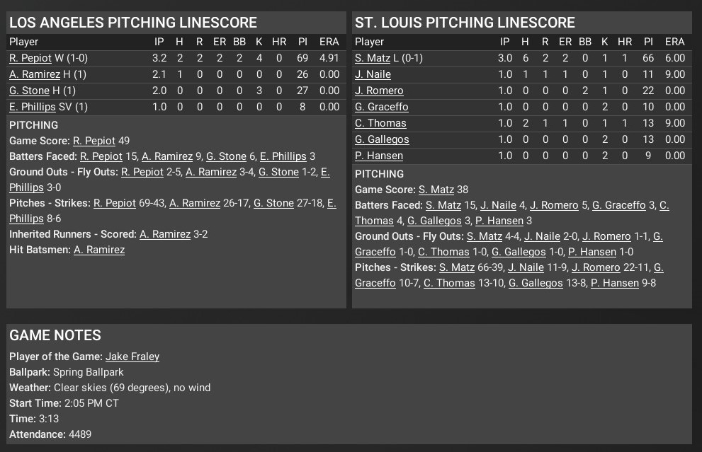 Cards news: March 2 -- Spring Training -- Los Angeles Dodgers 4, St. Louis Cardinals 2