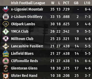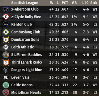 England - The Football League Standings: ![]() Awards: Reliever of the Season: RHP Finn Cairney (Accrington) - 35.1 IP/31 K/7 BB/1.02 ERA Young Player of the Year: RF Julius Shaw, 23 (Accrington) - .322 AVG/.348 OBP/7 HR/43 RBI/2.6 WAR Pitcher of the Season: RHP Ezra Bork (Notts County) - 108.0 IP/147 K/10 BB/1.75 ERA, led the league in IP, K and WAR(6.0) Player of the Season: 3B Brent Kilmister (Accrington) - .338 AVG/.373 OBP/11 HR/39 RBI/2.1 WAR Scotland - Scottish Fotball League: Standings: ![]() Awards: Reliever of the Season: RHP Rory Duncan (Abercorn) - 40.1 IP/31 K/8 BB/1.12 ERA Young Player of the Year: RHP Andrew Murray (Cambuslang) - 76.0 IP/64 K/18 BB/1.89 ERA, led the league in ERA Pitcher of the Season: RHP Alvaro Orcagna (Dumbarton) - 81.2 IP/81 K/16 BB/2.20 ERA, led the league in WHIP(0.88), BABIP(.245) and WAR(3.3) Player of the Season: RF Lee Dark (Dumbarton) - .388 AVG/.460 OBP/15 HR/69 RBI/3.1 WAR, led the league in AVG and OPS(1.099) North Ireland - Irish Football League Standings: ![]() Awards: Reliever of the Season: LHP Rogan Feeney (Linfield) - 38.2 IP/13 K/8 BB/0.47 ERA Newcomer of the Season: RF Asmund Hjerstrand (Ligoniel) - .500 AVG/.568 OBP/4 HR/31 RBI/7.2 WAR, led the league in AVG, OBP, SLG(.723), OPS(1.309), Hits(83) and Triples(2) Pitcher of the Season: RHP Henry Clarke (Lisburn) - 68.0 IP/75 K/3 BB/0.40 ERA, led the league in ERA Player of the Season: RF Asmund Hjerstrand (Ligoniel) The next post will cover the 1892-93 season of the English, Scottish and Irish leagues. In England, three new teams come into the league: Sheffield Wednesday, Nottingham Forest and Newton Heath(who would later become known as Manchester United). Darwen was not re-elected. In Ireland, the league would be reduced to 6 teams.