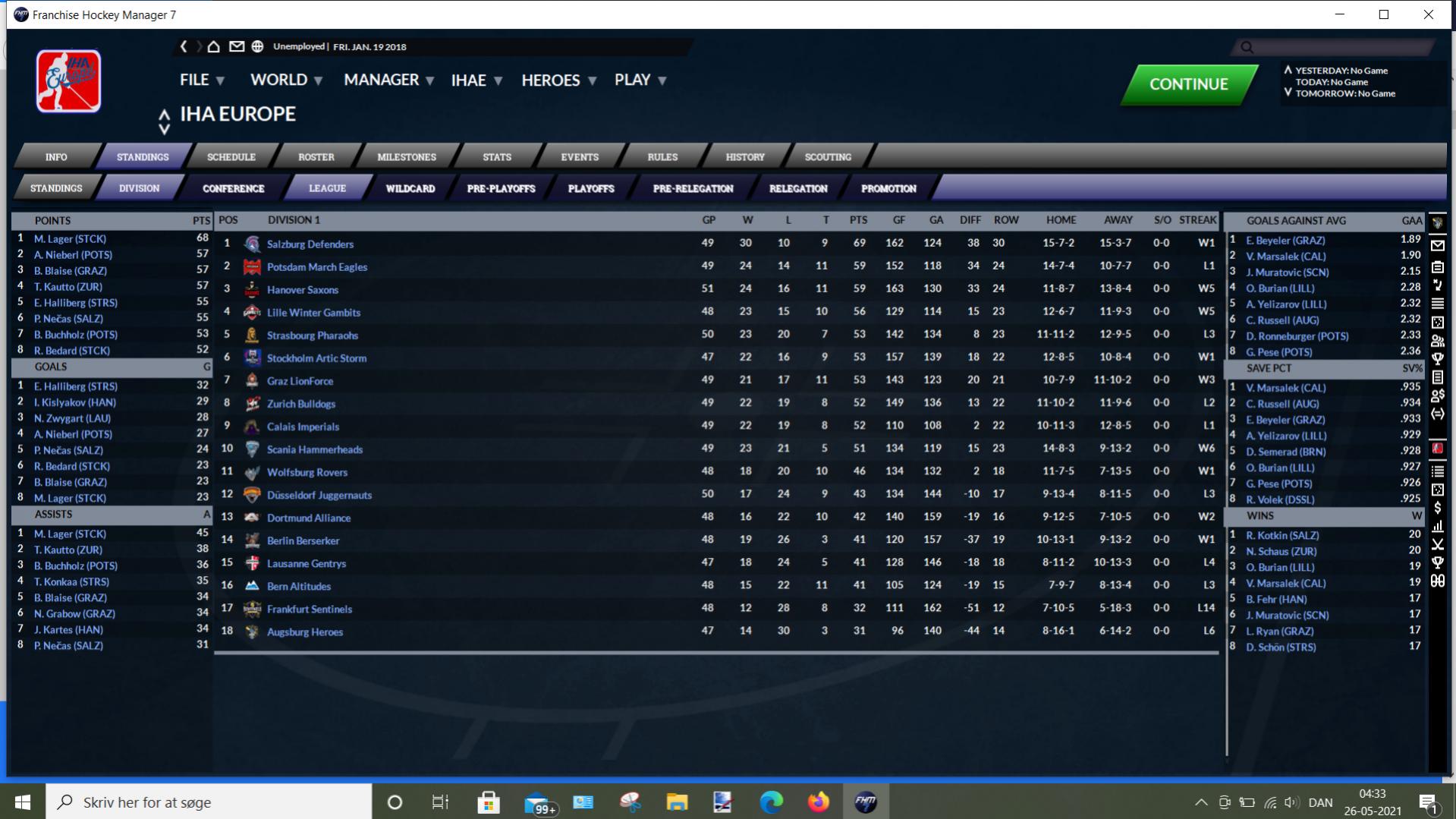 The European League of the IHA (Ice Hockey Association) is rebooted once again, player names and talent levels are simliar to before, but am currently starting in 2017,