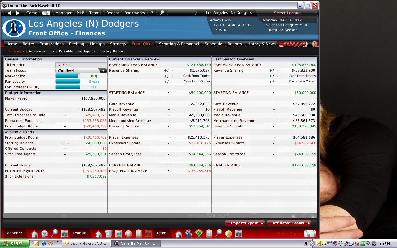 One thing you can do to fix this is go to the setup area and create financials for teams. I did this last night and all those negatives went away.