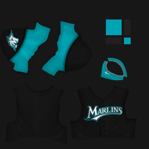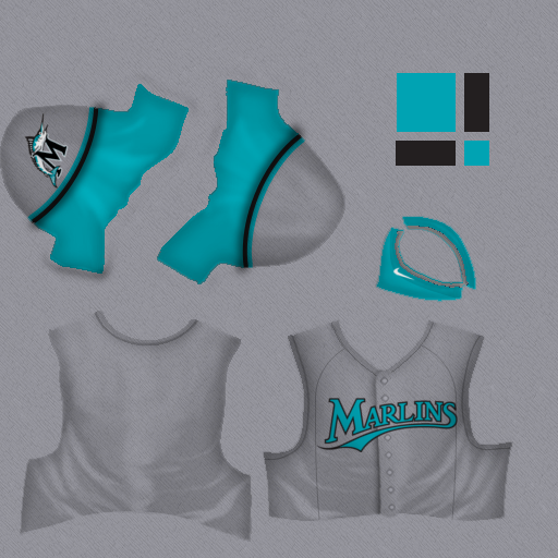 Caps: Home (All Teal) Away (Black Hat/Teal Brim) Alternate (Teal Hat/Black Brim) Jerseys: 93 Style Away Gray with Miami across the chest instead of Florida If anyone is capable of this, I would be so grateful. Thank you to anyone who is willing to try. |