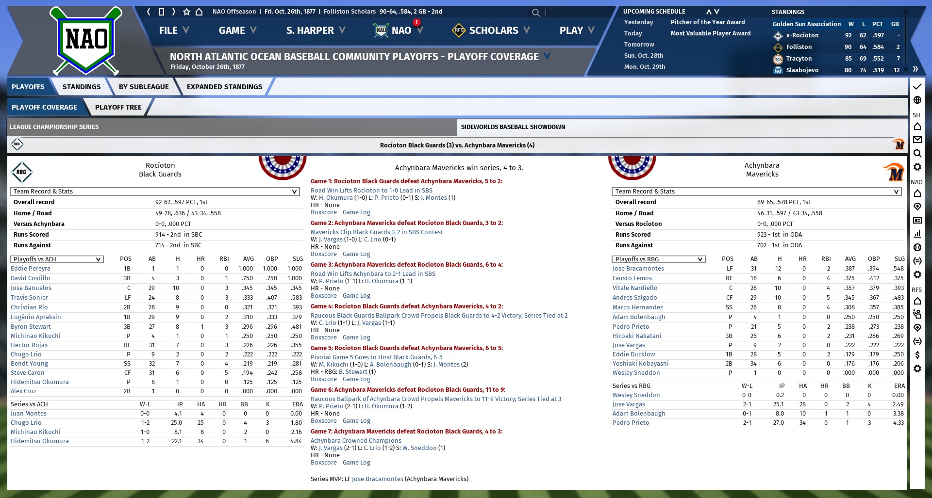1876 North Atlantic Ocean Baseball Community final regular season standings and playoff results. That is all. CD out.
