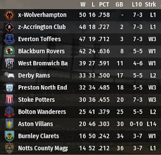 Preston North End became the first back-to-back champions in the history of football after finishing on 33 points(2 points were awarded for a win in 1889). Meanwhile, in OOTP, Wolverhampton Wanderers won their first ever championship.
