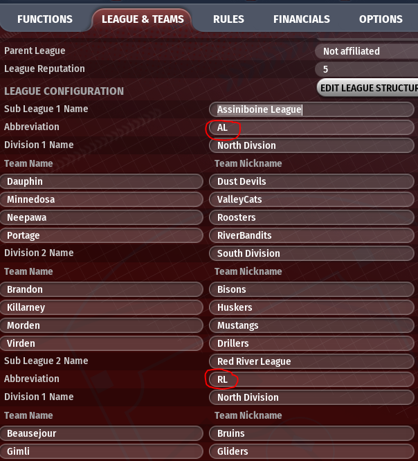 You can set the league abbreviations to whatever you want under' League Settings' and then 'League & Teams'. That's what is used for the All-Star games. Or am I missing something?