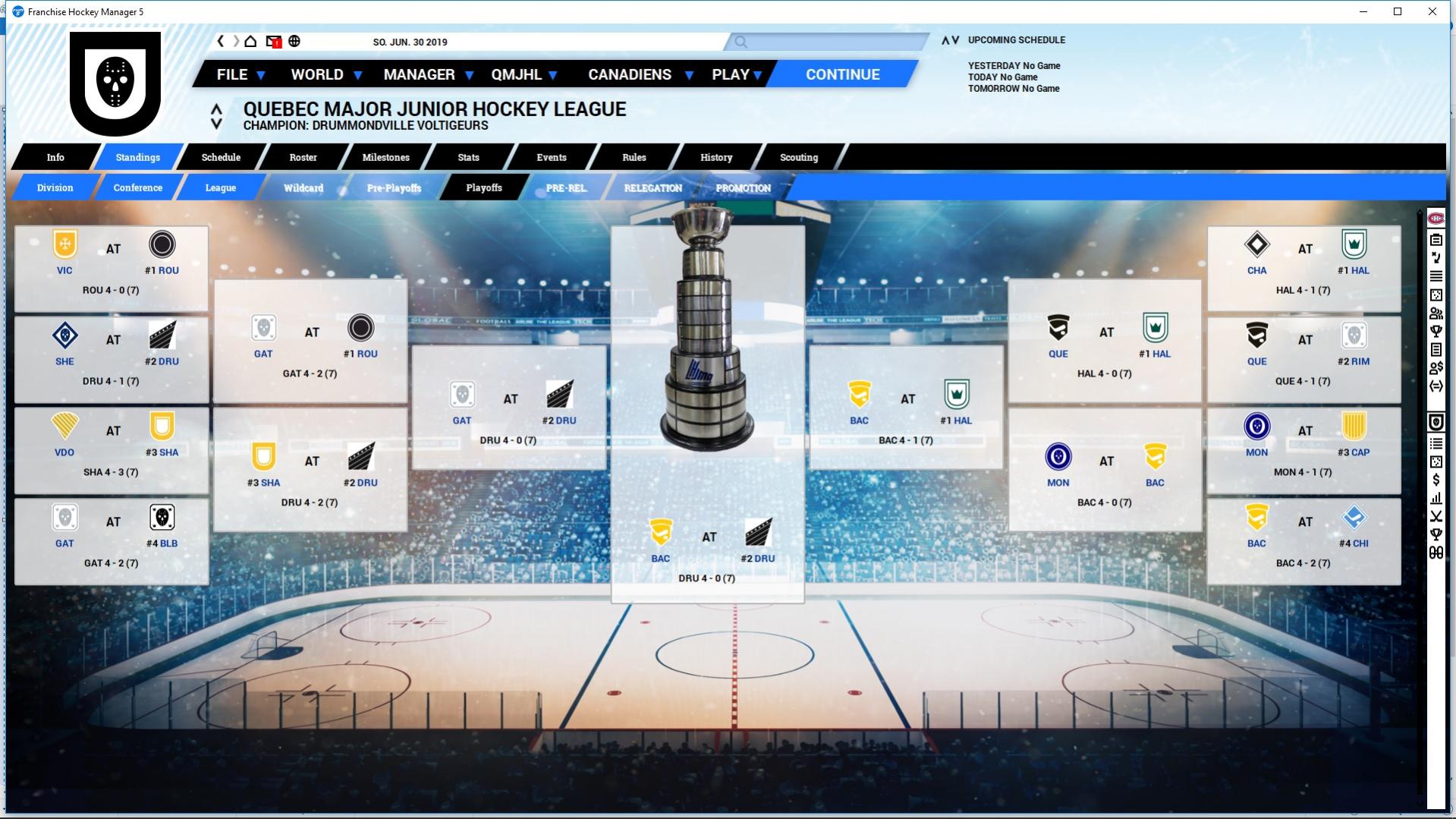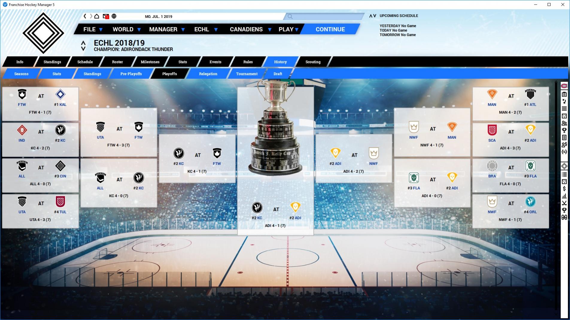 I will post pictures of playoff trophies for specific leagues in this post until this set is finished. Current leagues included: NHL AHL ECHL WHL QMJHL OHL WHA IHL KHL I also have the CHL Memorial Cup, but right now a bug seems to prevent it from being shown (has been reported). Will post it when this bug is fixed. Usage Of Files: Put the files into the folder "\data\quickstart_games\OpeningDay.quick\graphics\ trophy_pics" for "Standard" games. For "Historic" games use the folder "\data\quickstart_games\Historical.quick\graphics\ trophy_pics". General Info Regarding Usage Of Playoff Trophies For Different Leagues: FHM 4, FHM 5, FHM 6 and FHM 7 support usage of individual playoff trophy pictures for specific leagues. The identification depends on the league name which is defined before the trophy in the file name. Example: You put the following three files in the trophy_pics folder. File "national_hockey_league_po_trophy.png" is only displayed for the "Stanley Cup" award in the NHL. File "western_hockey_league_po_trophy.png" is only displayed for the "Ed Chynoweth Cup" award in the WHL. File "po_trophy.png" is used for all other leagues where no specific award file is defined. Current Version Attached To This Post... Last edited by jh95; 12-21-2020 at 04:07 PM. Reason: Updated with info about FHM 7 |