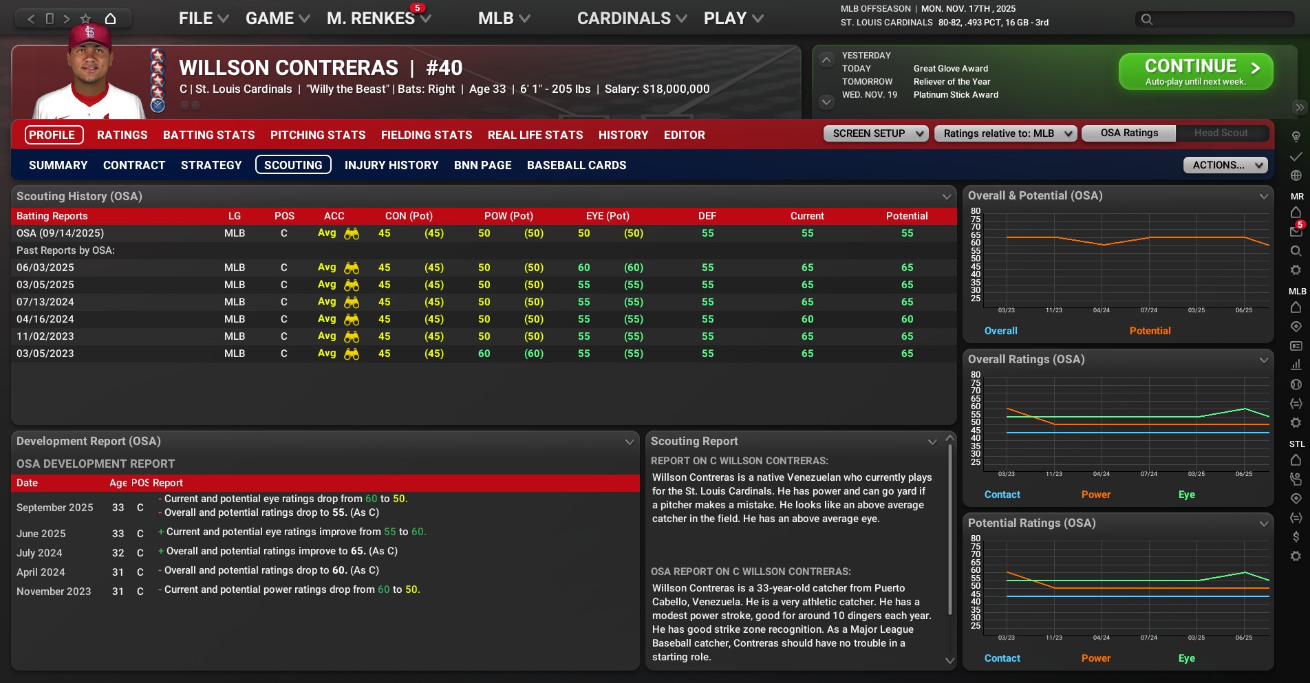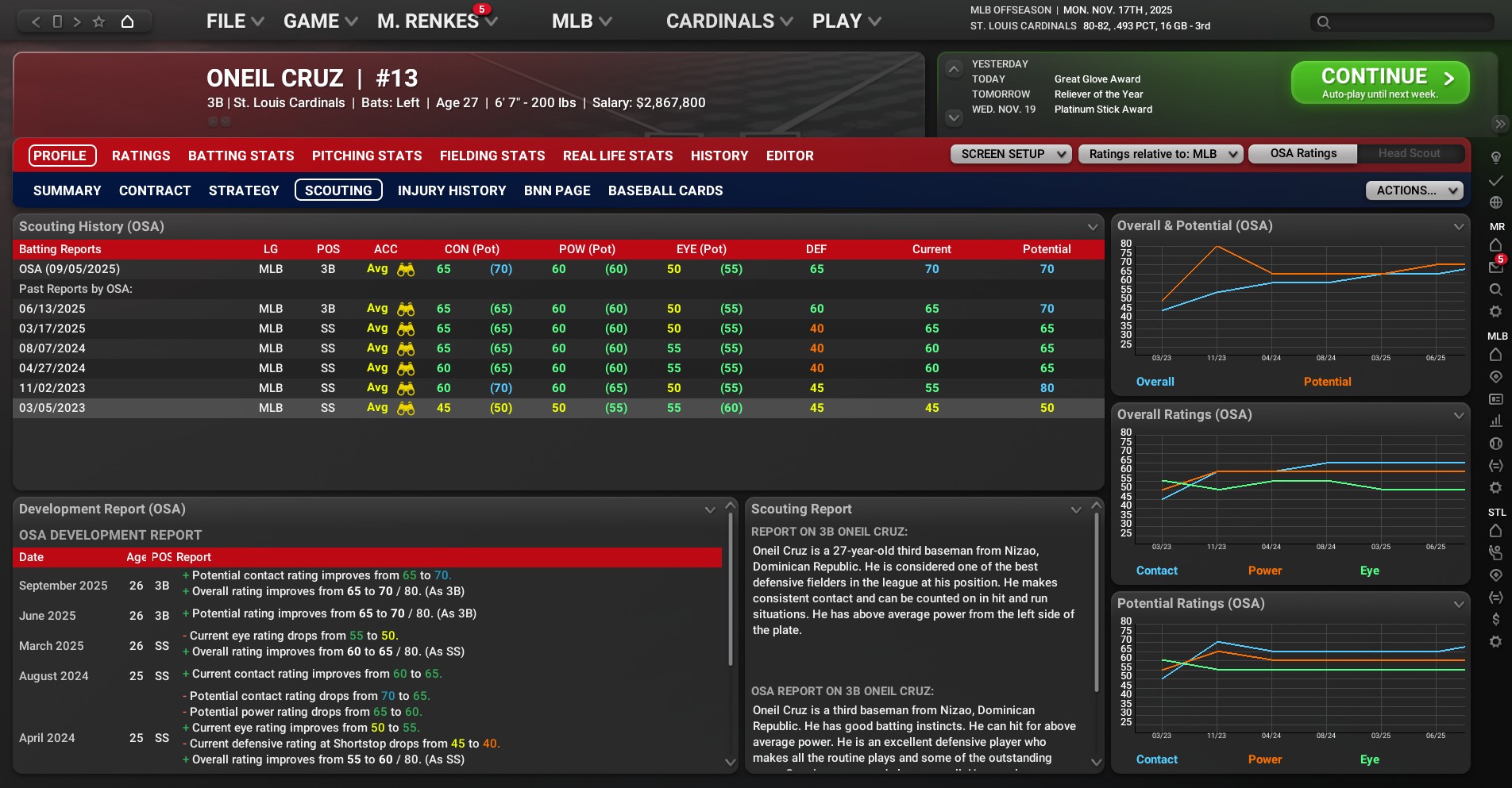 I just moved my Cardinals franchise from OOTP24 to OOTP 25 at the start of the offseason between the 2025 and 26 seasons.