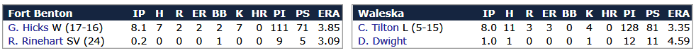 THE ISLANDIAN TIMES Wednesday, September 12, 2057 HICKS GIVE DEFENDERS BIG LEAD IN RU WEST The Fort Benton Defenders needed a big game from hurler Gil Hicks (17-16/3.85) and he came through for them, along with 38-year-old closer Randy Rinehart (5-4/3.09 ERA/24 saves/45 G)... the tandem teamed up for a tight 3-2 triumph over the Waleska Westerners (78-72)... it was the Defenders third win in a row... it took 12 hits and five double plays to do it... Marlon Hazard (.343/4 HR/41 RBI) went 3-5 and drove in a run... Eamon Hooper (.287/12 HR/77 RBI) socked two doubles and batted in a run... and Sam Arnett (.261/4 HR/68 RBI) chimed in with another RBI two-bagger... now Fort Benton (85-65) has a three-game margin over the Middlefield Roosters (82-68) in the fight for the RU West Division crown and a spot in the Pro Cup playoffs... only four games remain on the regular-season schedule. Last edited by Eugene Church; 05-18-2018 at 06:50 PM. |