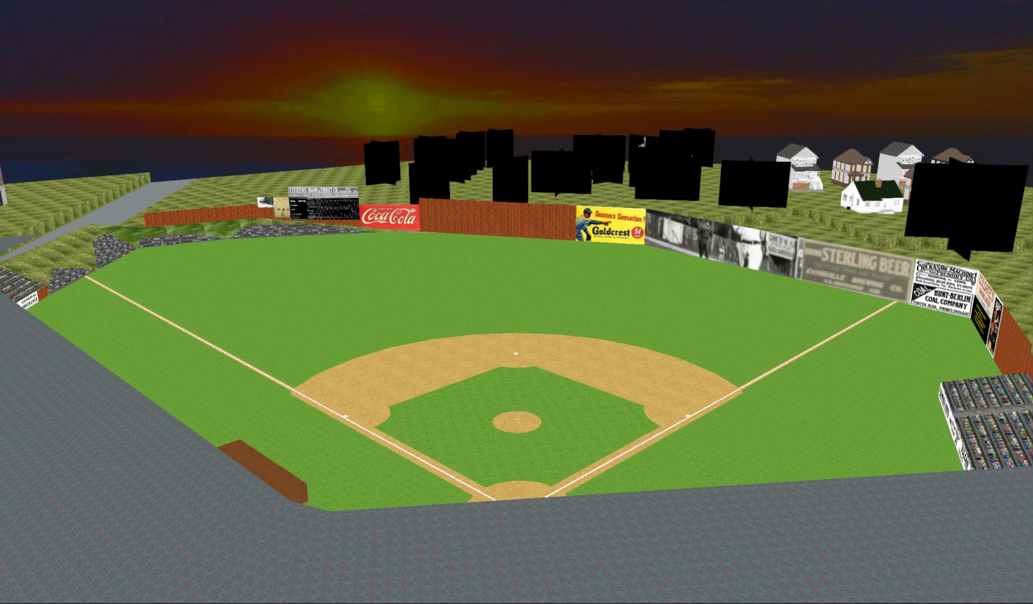 Using your Sketchup for Bugle, I was able to make some changes. I fixed the lights that were shown up black in OOTP (there were .BMP and I changed them to .JPG), I added a background and changed the dugout pictures. However, the infield dirt keeps showing up black in OOTP as you can see the pics. It looks fine in Sketchup. I tried every thing I could think of the fix it but nothing worked. The .MTL file has Groundcover_Sand_Smooth2 in it.