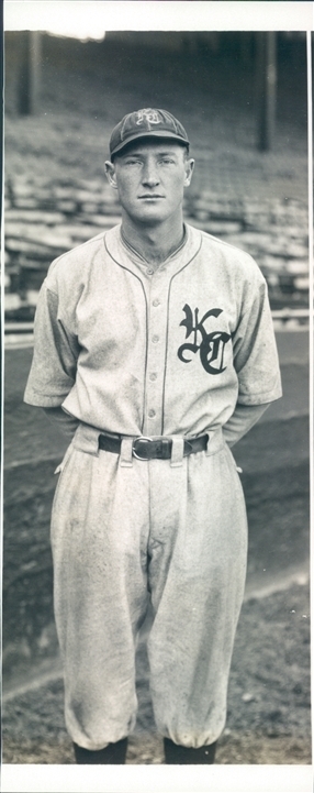 Luther Raymond "Red" Harvel colorized with minor league Kansas City Blues from an image shared by Bearman14. The image was upgraded by Deep Nostalgia.ai and colorized using Kolorize.cc