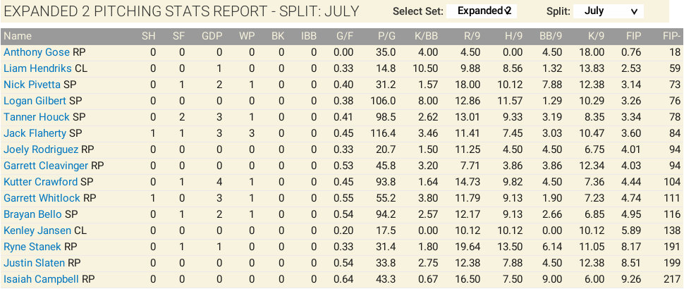 A fine month of pitching from Jack Flaherty (4-0; 2.33 ERA) and a dominate series of relief appearances from Liam Hendriks (10 for 10 in save opportunities) are the bright sports for the Red Sox pitching staff.