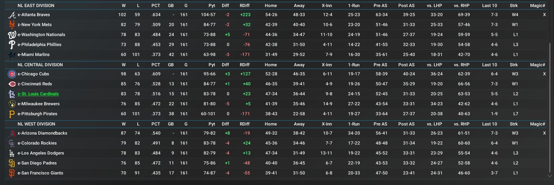 Record: 83-79, 3rd, 16 GB Chicago Cubs; wild-card berth clinched