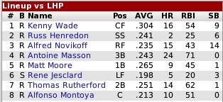 The Panther offense is hideous with a .231 BA (31st) and only 528 runs (32nd)... pitching is fair with a 3.76 ERA (16th)... 25-year-old starter Barney Benton (22-13/3.21) had a magnificent season, winning 22 games with a terrible club... RF Andros Ciak (.248) led the team with 21 homers and 65 RBIs... no one else was worth mentioning. EAST POINT: 8th Place (36 GB) |