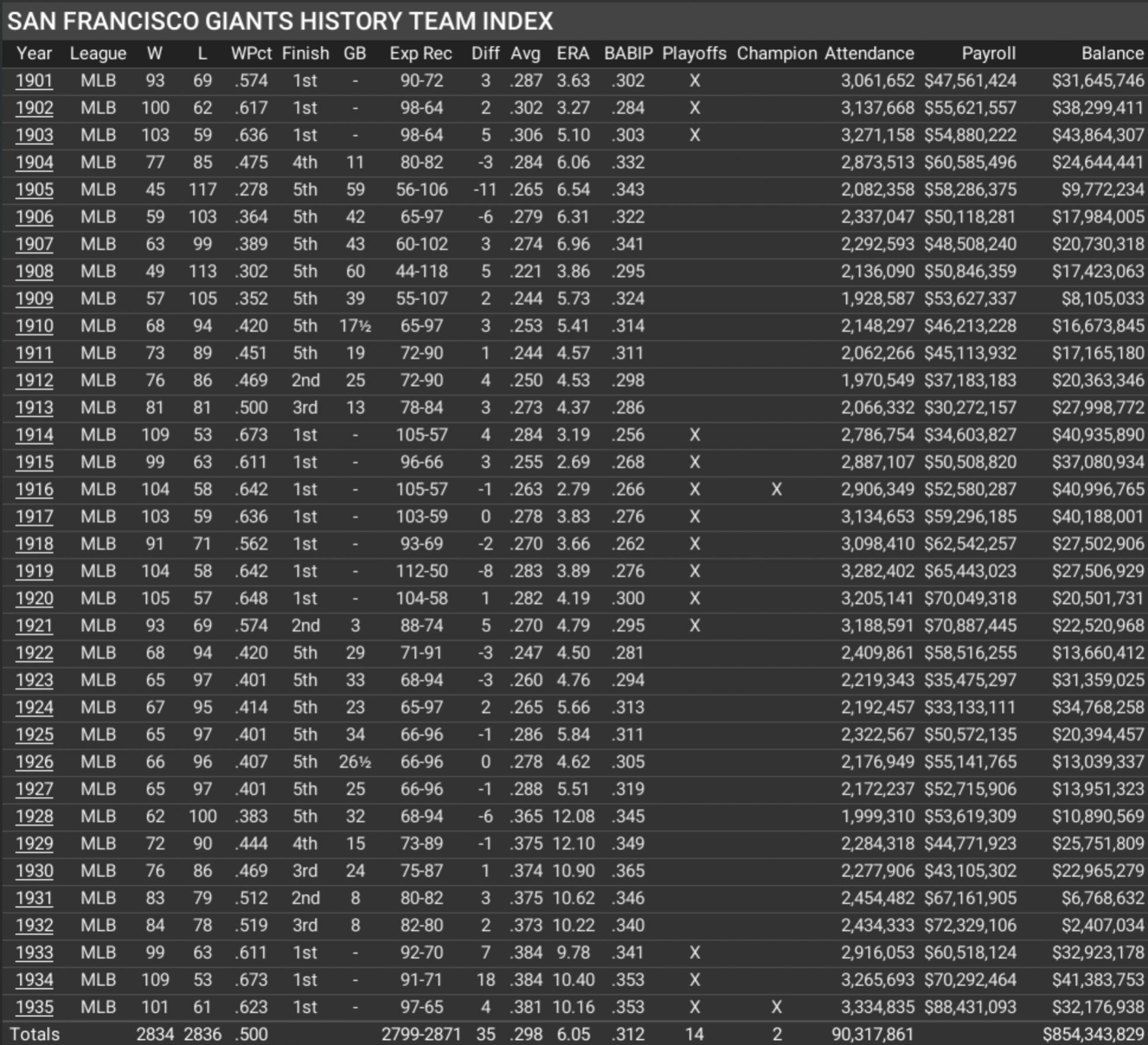 San Francisco Giants: 1935 World Series Champions (2nd title)