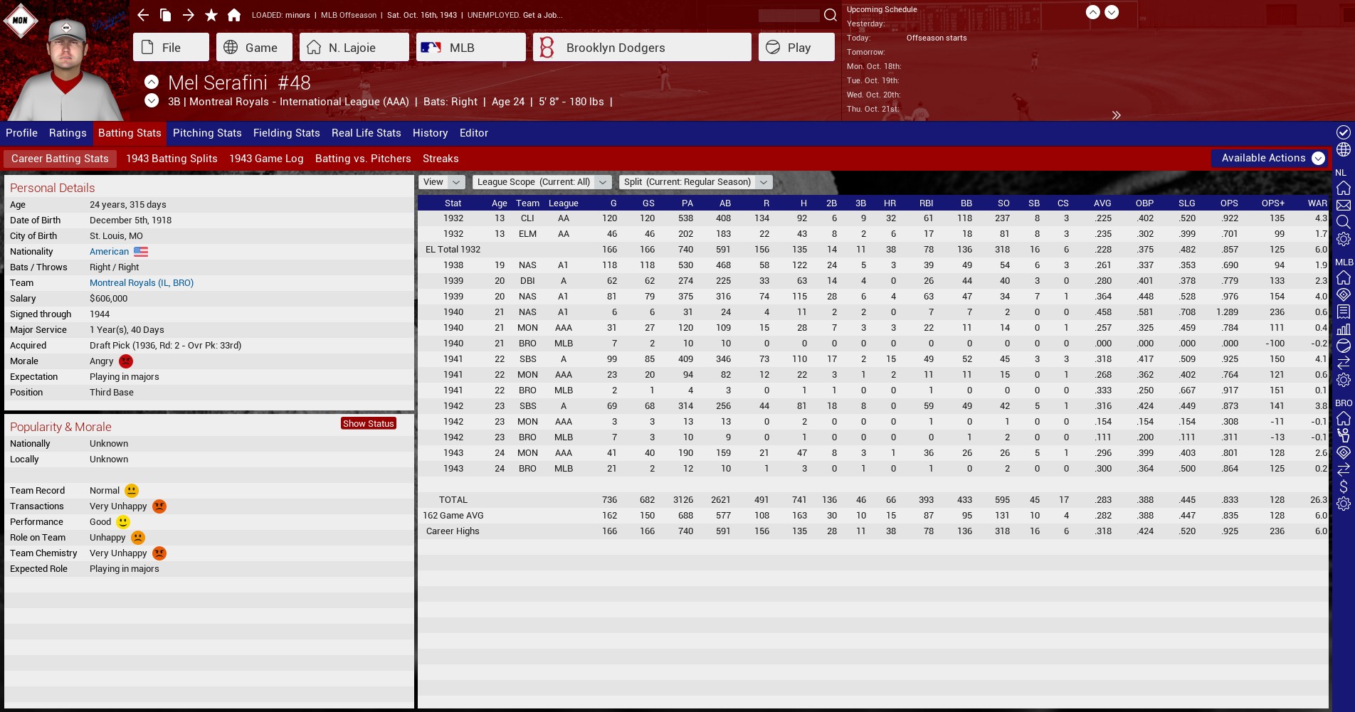 I added the three AAA league players only to 1919-1932 as if their league was there. They all became free agents and got signed.