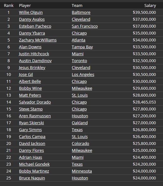 Still no Top 20 prospect. 2nd to last highest payroll. Albert Belle is the 8th highest paid player.
