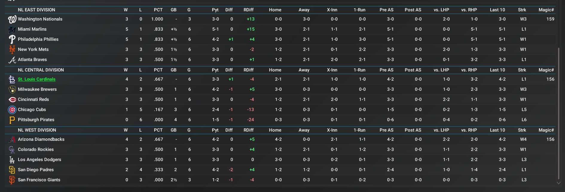 Record: 1-0, 1st/(Tied/w. Chicago Cubs), 1 GA Pittsburgh, Milwaukee and CIncinnati
