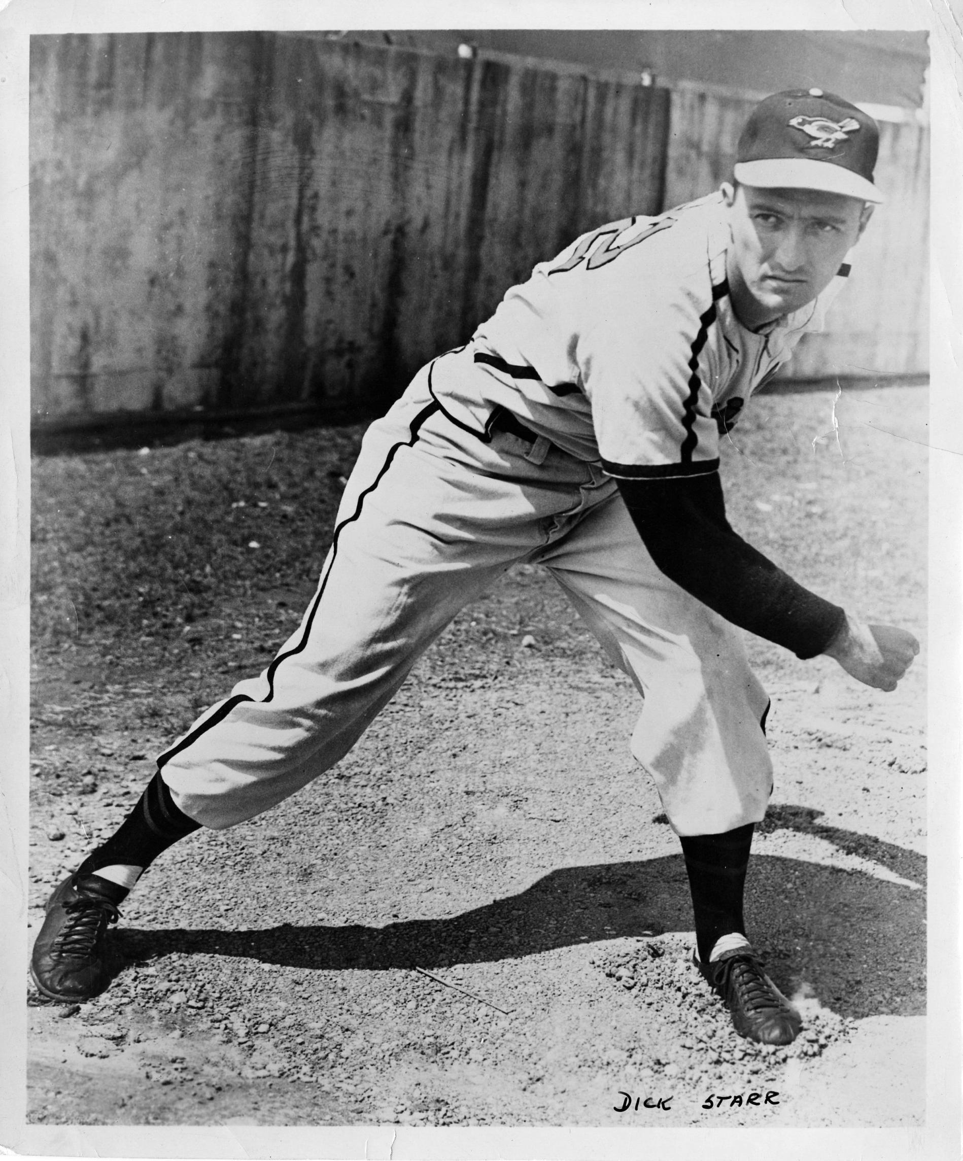 Googling up some of the recently deceased sometimes brings up images that I find interesting. So I bring them here that, perhaps, others might also find them interesting. In this case, we have a pair of pictures of Dick Starr, who pitched for the Yankees, Browns and Senators. When I first saw the Orioles image (and not knowing much about Starr), I sorta figured it was a major league image--possibly he drifted into their camp one year and didn't make the cut (hey, its why I do it at all because my knowledge base is crap before 1962). So I figured he pitched for the Browns, the Browns became the Orioles, yada yada. So, yeah, it's the minor league Orioles (either '52 or '53), then a farm club for the Phillies. The image comes from Goldin Auctions. The other image is Dick with the 1942 Butler Yankees and comes from a site devoted to Pullman Park. I grey-scaled both images because I do that sort of thing.