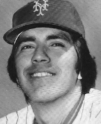 de la Rosa got three at-bats as a pinch hitter for Houston in early August of 1975, going 1-3 with a double. This image is from a Senior League card showing him with the Gold Coast Suns. It's offered as an alternative to his b&w Iowa Oaks facepack image. |