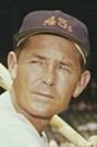 Really too far away to be a good shot; even the "facepack"-size is a half-body shot. And not terribly rare, since the A's still wore these uniforms in spring training of 1961 [as seen on Leo's 1961 and 1962 Topps cards, both with the red-letter cap], before changing to white-letter cap in the current facepack for the '61 season. But it's still a different uniform than he'd wear for most of his career, so I figured it was worth including here. Enjoy. |