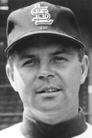 1957 Cardinals photo, alt for the doctored Cubs hat from Miksis's 1957 Topps card.