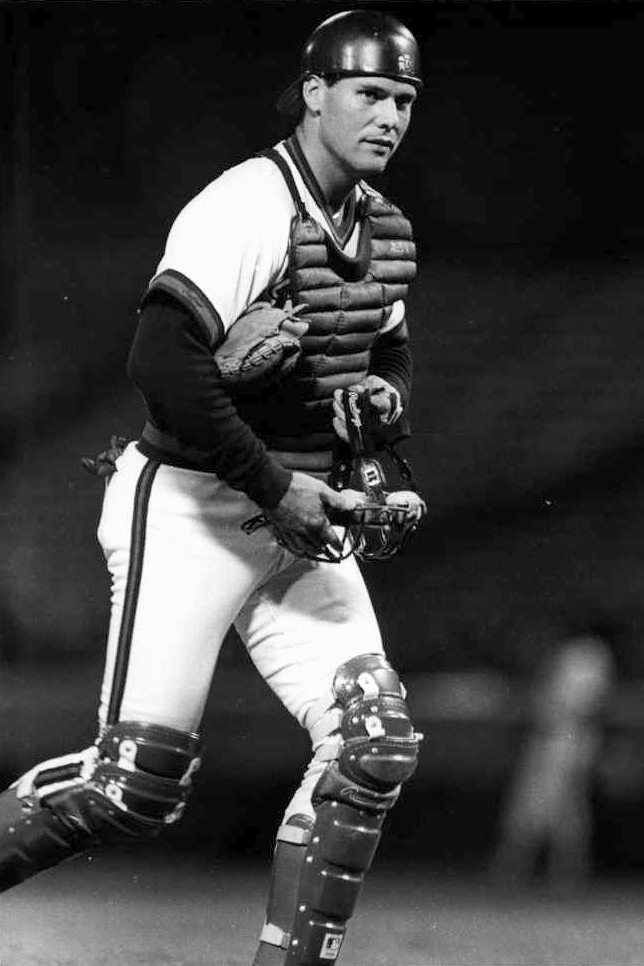 1988 Angels, with just a sliver of the Angels logo peeking out from under his chest protector.