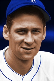 Ed Freed only had one big league season, with the 1942 Philadelphia Phillies. This is the second guy I have colorized with that bizarre black and white Phillies color scheme. Even though he did not play with the Phillies in 1941, I have colored the hat blue in the second image so that it looks more like a Phillie cap.