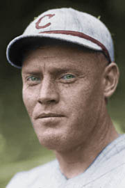 Except that it's got a case of the Topps Excessively-Red syndrome, and I haven't been able to cure it properly. Here's as good as I've gotten, with the original as a reference point:I'm sure someone with better skills can improve on my "work" here. (I tried to use an editing program, but I don't know how to separate the face so that I can get the skin tone correct without over-blueing the uniform, for example. I only know how to filter the image as a whole, not the component parts.) Interesting to see Keough wearing a road uniform with "Chicago" in red letters, outlined in blue; according to Dressed to the Nines, the Cubs wore blue-outlined-in-red until they changed to simple blue lettering in '69. Variant uniform, or does the Hall have the color scheme wrong? Also, wtf happened to Keough's face? He wasn't nearly this wizened with Cincinnati in 1962 or '63 (can't tell the year by the uniform, but that's the Polo Grounds behind him): Apparently, life in Cincinnati takes a lot out of you. Who knew? |