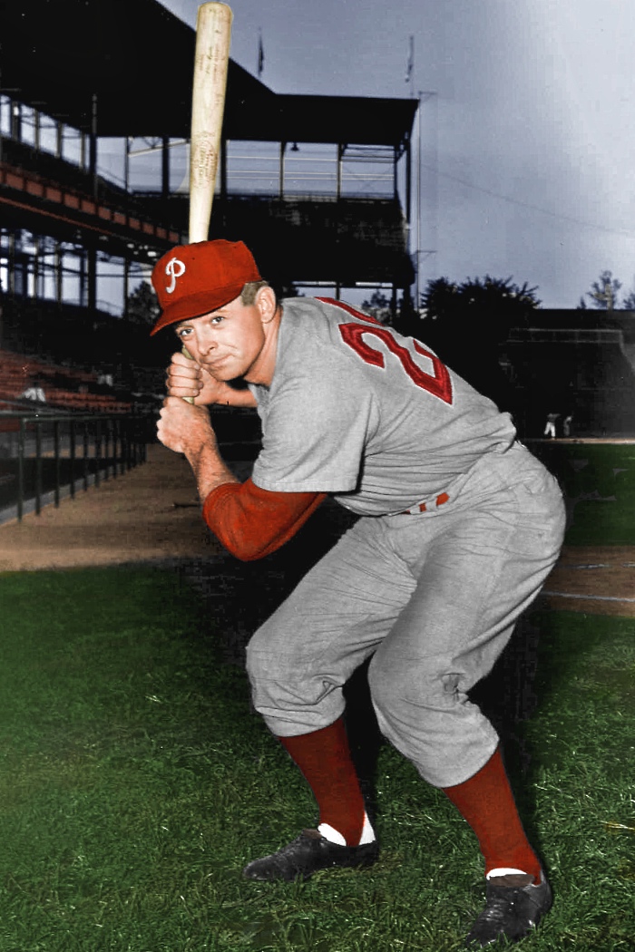 The Phillies decision to go to the red-based uni that was familiar through the 1950s and 1960s was actually kind of revolutionary for its time. In the late 1940s all uni lettering and details and caps were blue or black-based from bright royal blue to navy blue to black. The Phillies introduced their red-based unis on Opening Day 1950 into this otherwise drab scene (The Senators,Indians, Reds, Cubs and Cardinals had a few red elements in their uniforms, but the designs were still primarily blue.). They had even worn the previous year's design uniforms through Spring Training in '50 in part to disguise and keep secret the new unis and then they unveiled the new red ones on Opening Day. This splash of color caught more than a few fans and sportswriters offguard, but Phillies fans quickly grew to love the new Phillies colors. An example of this uniform is displayed in section 17329 in the uniforms worn by Stan Lopata (Road Uni: Top & Home Uni: Bottom.) Last edited by KenRaffensberger16; 01-05-2013 at 12:35 PM. |