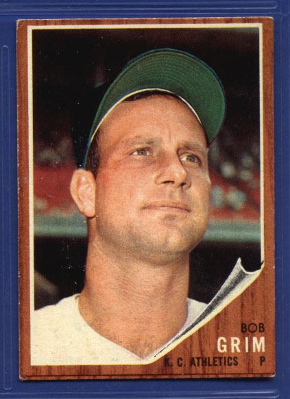 Again I find that I only have a black & white of Bob Grim with the Indians. I do notice though that the 1962 Topps card shows Grim from 1961 with the Cardinals. If anyone has the original of that shot, you could use that: