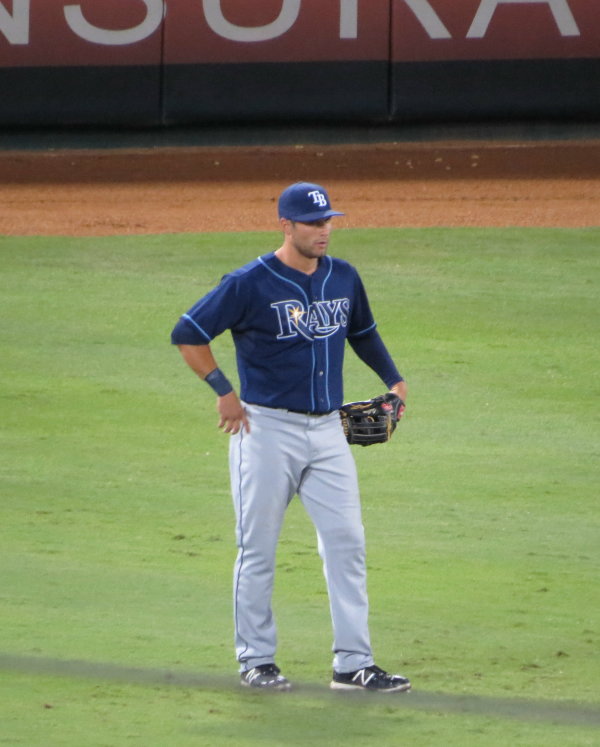 I was at this game and noticed Kiermaier sitting in the dugout about the 2nd or 3rd inning. My first thought was "who the hell is that?" So I took a few pictures. Then in the 9th, I noticed him coming onto the field and since I thought there was at least a chance it was his MLB debut I got my camera out and took about 100 more photos of him running onto the field, warming up, standing in the outfield ready for action, and even on the run as he was backing up a play to left field. Here are some of the better ones: