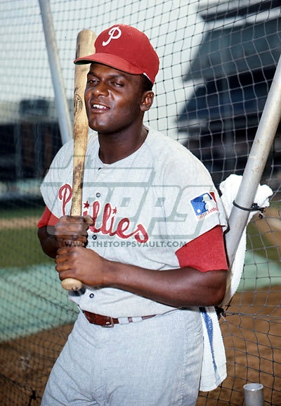 Chico Ruiz (1970 Topps Vault) / Jay Johnstone (1970 Topps Vault) / Art Kusnyer (1972 Topps Vault) / Syd O'Brien (1972 Topps Vault) / Bob Oliver (1973 Topps Vault) Kusnyer & O'Brien have on the hats used in 1971 so I guess they were still in use during Spring Training 1972. |