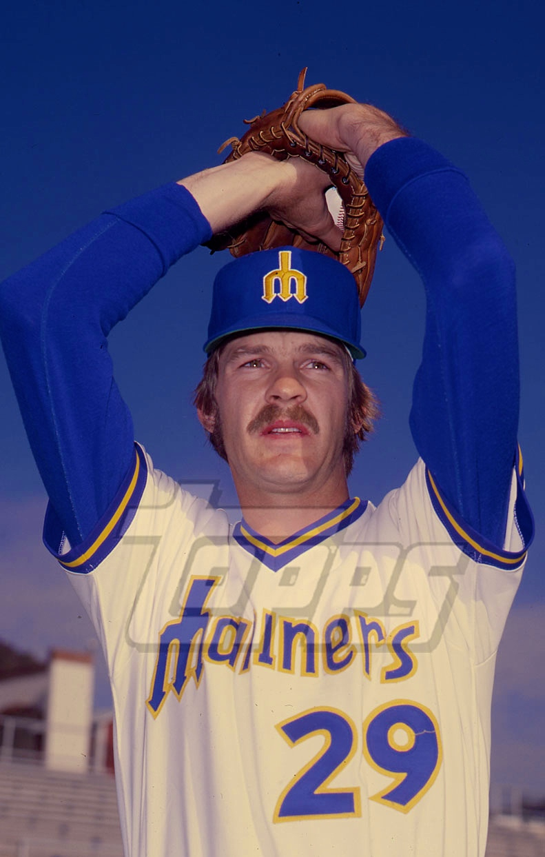 Jim Minshall, probably in Spring Training '76, after he had appeared in a handful of games for the 1974-75 Pirates. Then a shot from his ill-fated attempt to make the first year roster of the Mariners at spring training 1977: |