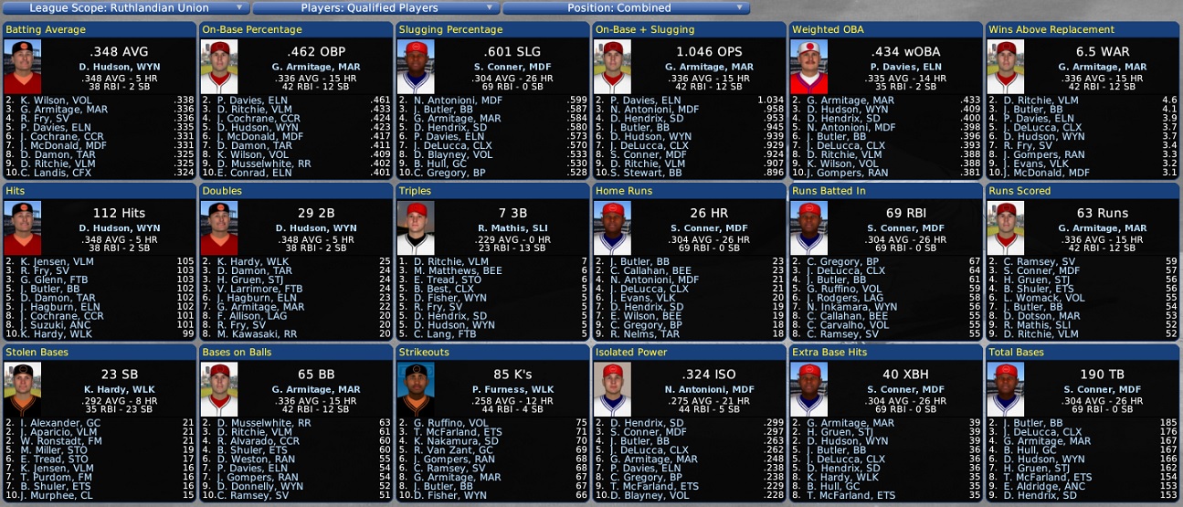 Monday, July 1, 2047 TYCOBBIAN UNION BATTING LEADERBOARD Last edited by Eugene Church; 07-04-2014 at 05:14 PM. |