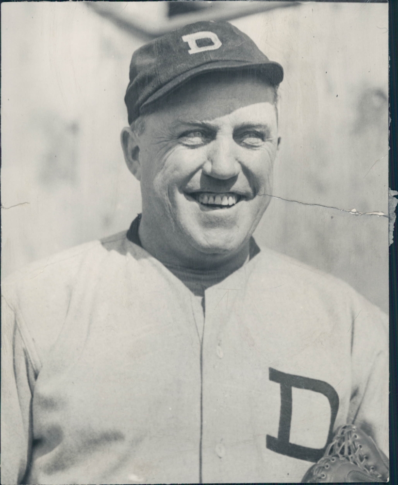 UKBaseballFan, I think you are correct.  The flag on the Detroit player's sleeve identifies this as a 1917 uniform.  That narrows the possibilities to catchers Oscar Stanage, Tubby Spencer, and Archie Yelle (unless it was a spring training photo of someone who didn't make the regular season roster).  The player doesn't look like Stanage or Yelle to me.  I've attached a photo of a younger Tubby Spencer in a St. Louis Browns uniform, showing him with a similar expression on his face.