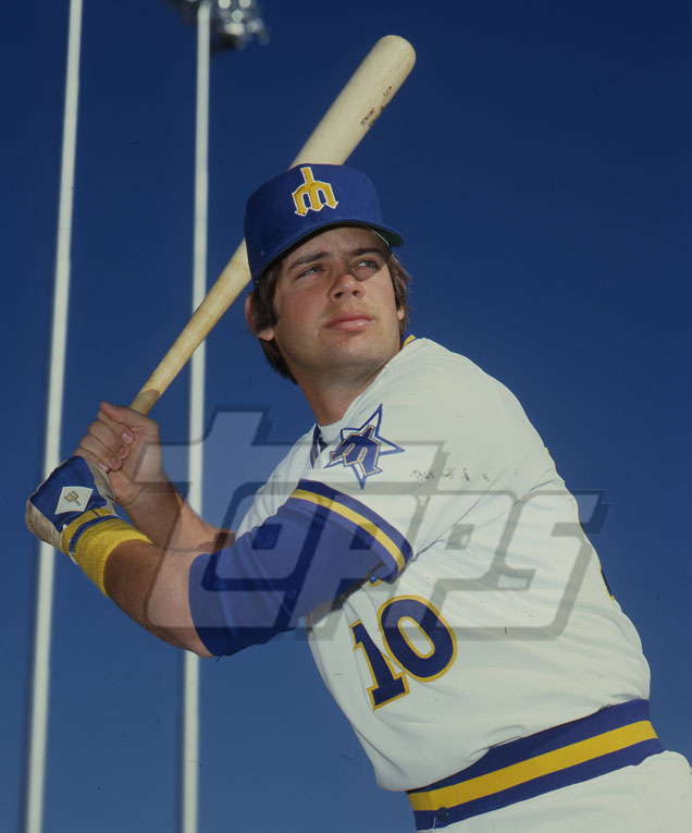 Red Sox Began his career in 1977 with six hits in his first six at bats. Got exactly 183 more in his life. Also shown with Seattle (1980, though this looks like a spring training 1981 shot), courtesy Topps Vault. |