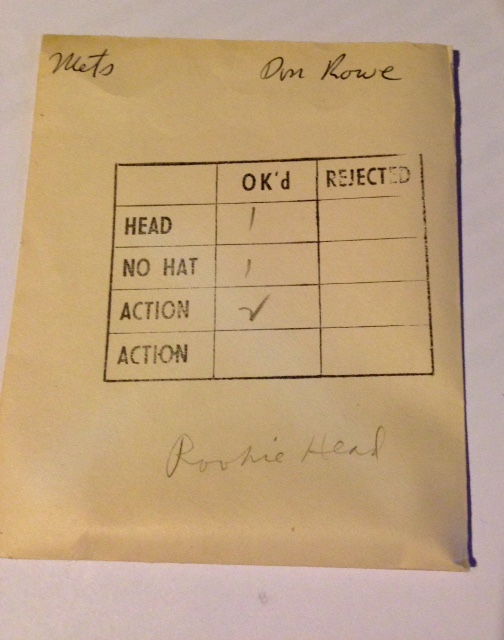 I love both the Mets and vintage baseball cards, and a while back I started making custom cards for the cup-of-coffee guys who never got their own Mets cards, only shared a card with other rookies, etc. I don't sell or share these -- I have no wish to anger Topps. it's a weirdo personal hobby that satisfies my OCD impulses. I can create something that didn't exist but my heart insists should have, and filling that weird little void makes me happy. Baldwin's one of the tougher missing Mets -- I was surprised to see Topps had even shot him -- and the actual slide would have let me make a great card. This will sound goofy, but to me there's something quite distinctive -- magical, even -- about a real Topps image. I don't have the photographic vocabulary to explain why, but you can spot one at a glance. I have seen TV images reappear a few months later as 8x10s signed by players (I've even bought a few), but I hope the Baldwin slide went to a collector who loves obscure Mets, Topps photography, Billy Baldwin, whatever -- someone like Buccos.com's friend who loves Jerry May. (BTW, Jerry May is another awfully tough obscure Met.) That said, when I bought a TV image of Don Rowe I got this with it. Which, as a lover of baseball-card history, was an awfully cool bonus. Last edited by BklynJace; 06-19-2015 at 07:32 PM. |