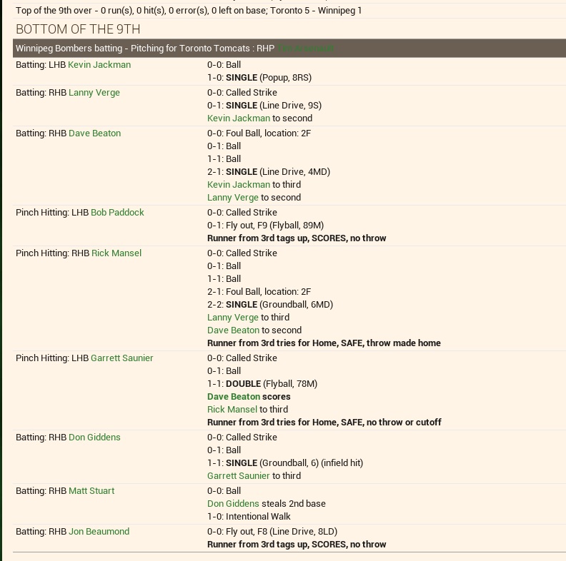 One thing I would love to see Markus enhance in the game log - I hate how it says "runner from third scores." Then I have to look through the preceding lines to understand who scored. It would be cool if we had either of these things: