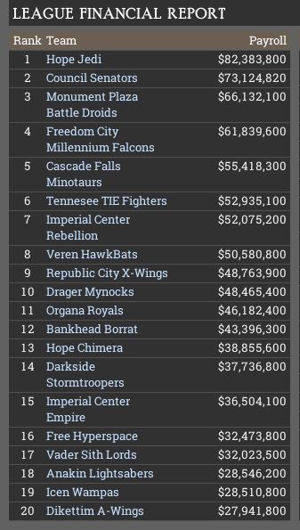 MLB is modern plus I add $250 K per year to each contract section. EBL is 1994 financials. CBF is 2004.
