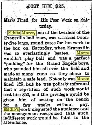 Edward M. Mars photo was featured in his 1917 passport application that can be found on ancestry.com or familysearch.org. It's a pretty poor image though. I've also located a cartoon illustration from his disastrous singular appearance with Evansville in June 1891, a performance so bad that he was fined $75 dollars and released. Neither image is ideal, but it's the best I've found so far.