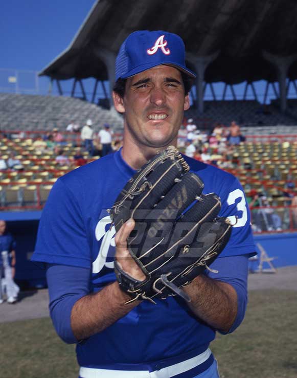 The uniform number is wrong (he wore 34 in his brief major league tenure) but the face is unmistakable - a USC star and the subject of a brief bidding war after he was improperly selected by Cincinnati in the 1979 winter draft. Looks like the Atlanta images date to an unsuccessful bid to make the 1983 Braves.