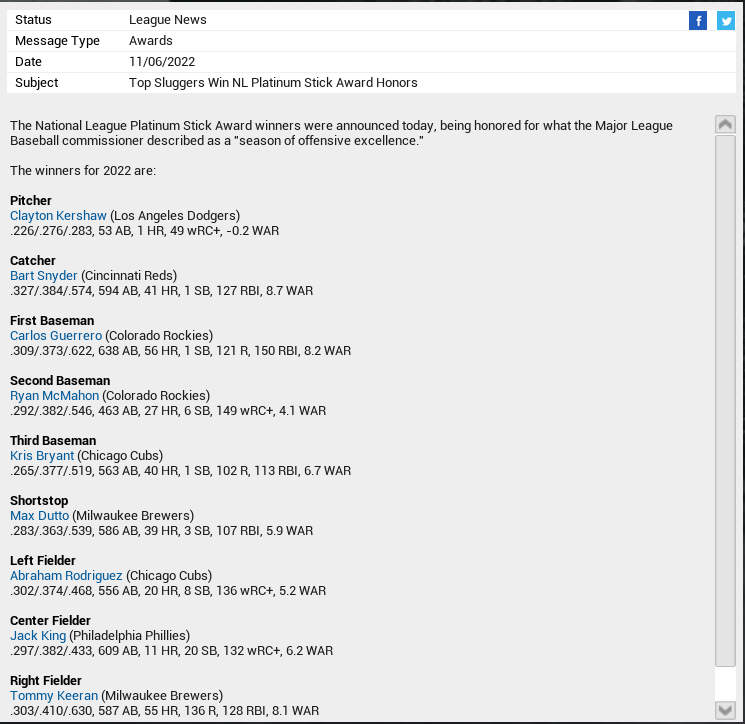 Notes: Pretty big seasons had by all, with the exception of the pitchers who are solid #2 guys right now, but not dominating quite like the hitters. |