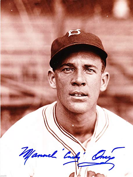 Manuel Dominguez "Curly" "Ralph" Onis colorized with the 1935 Brooklyn Dodgers. Onis is from the "Moonlight" Graham mold, having played in one major league game.Unlike Graham, Onis got one at bat and made the most of it collecting a single. So, he will forever have that perfect 1.000 batting average. Makes you wonder why he only got the one chance.