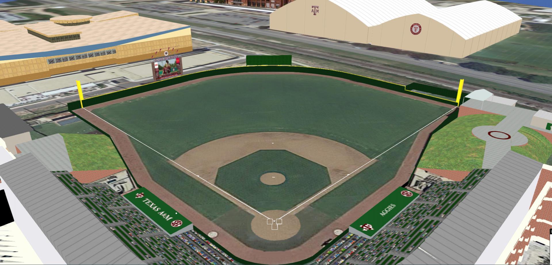 Stadium - Olsen Field Lat - 30.60575 Long - -96.3413 Capacity - 5400 LL - 330 LF - 340 LC - 375 CF - 400 RC - 375 RF - 340 RL - 330 LL - 10 LF - 10 LC - 10 CF - 10 RC - 10 RF - 10 RL - 10 LHB - 1.021 RHB - 1.006 2B - 1.099 3B - 1.016 HR LHB - 1.030 HR RHB - 1.035 |