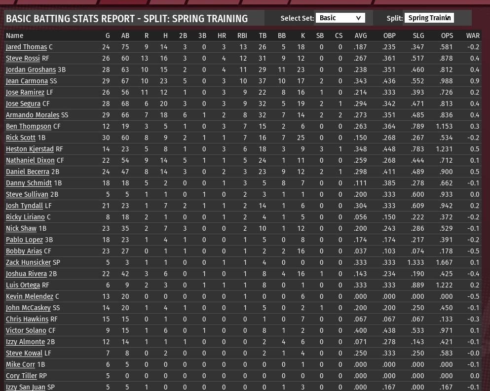 Walkers news: April 3 -- Spring training statistics