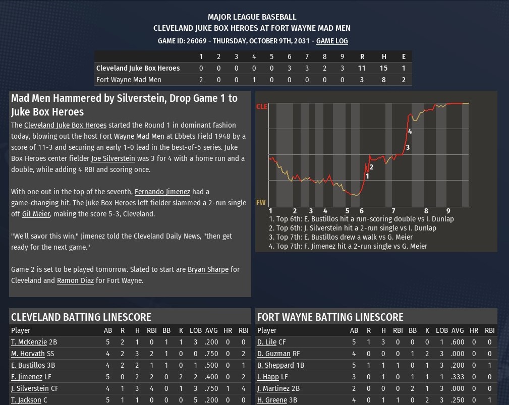 MBL news: Oct. 13 -- World Series preview -- Cleveland Juke Box Heroes 2031 season statistics