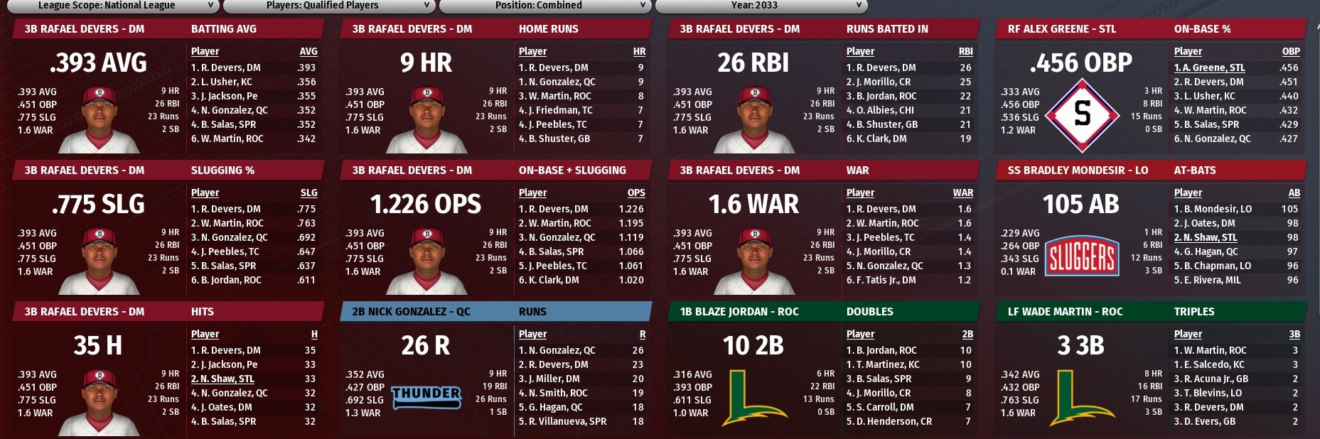 MBL news: May 1 -- Players and Pitchers of the Month for April 2033
