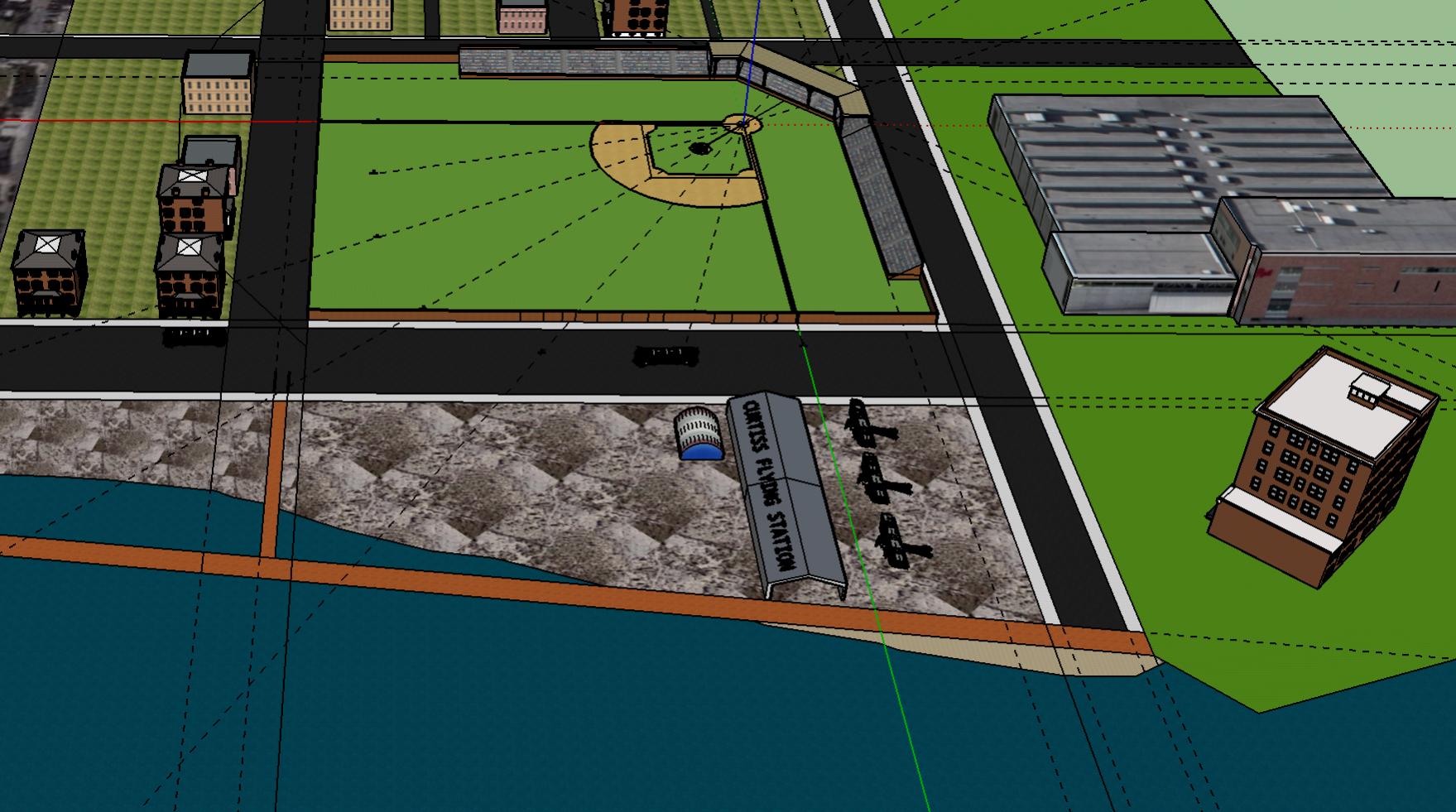Here's another one I recently finished: Inlet Park, one of the early homes for the Atlantic City Bacharach Giants. There's not a whole lot to work from here, and I couldn't find any interior photos. There's also potential for some confusion (or some actual confusion) since there was a different "Inlet Park" that was very nearby and that's listed in Green Cathedrals, but that one seems to have been this one's predecessor. There's also a public space called "Inlet Park", from which I assume the ballpark took its name. In any case, this is the Inlet Park that's shown in the Sanborn map that I've included below and also shows up on a gorgeous 1920s aerial photo of Atlantic City (also included below). It sat next to a Curtiss airplane facility, which I included a nod to in the models. This is another Negro League park for folks who are noting those. The next one I post, which is the last one I have finished right now, is Tate Field on Richmond's Mayo Island. No Negro League team called that its official home, but Green Cathedrals called it one of the most frequently-used neutral sites for Negro League games in the east. Google Drive link to (updated) Inlet Field zip file. Last edited by asrivkin; 08-18-2021 at 05:22 PM. Reason: Putting the actual link to the file in, for crying out loud. |