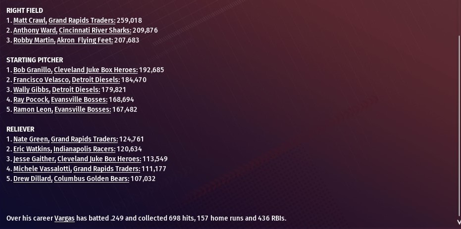 Cade Doughty singled off St. Louis relief pitcher Scott Rissler to drive in Chase Davis with the winning run with two outs in the bottom of the 11th inning, as Detroit defeated the River Walkers 6-5 at Tiger Stadium. Jimmy Gorman got things moving for the Diesels with a one out single off Rissler. Davis then hit into a fielder's choice, with Gorman being eliminated at second. Juan Herrera followed with a single to put runners at the corners. Doughty then won it with a single into left on a 2-0 pitch. Detroit had forced extra innings with a run in the bottom of the ninth. Alejandro Crespo led off the inning with a single off Nick Strother. He scored on a Gorman one-out single off Nick Ruffalo. The Walkers had taken a 5-4 lead in the top of the seventh on a two-run Nick Shaw single off reliever Rob Pillsbury. Diesels starting pitcher Ray O'Leary went 5.1 innings, allowing three runs on five hits. He struck out six and walked two. Detroit needed six relievers to finish the game, beginning with Josh Crespo, who got the final two outs of the sixth. After that, it was Nate Wilson (0.2 IP), Pillsbury (1.1), Bill Russell (1.0), Jeff Hoffman (1.0) and Nestor Quito (1.0). Quito (1-0) earned his first win of the season. |