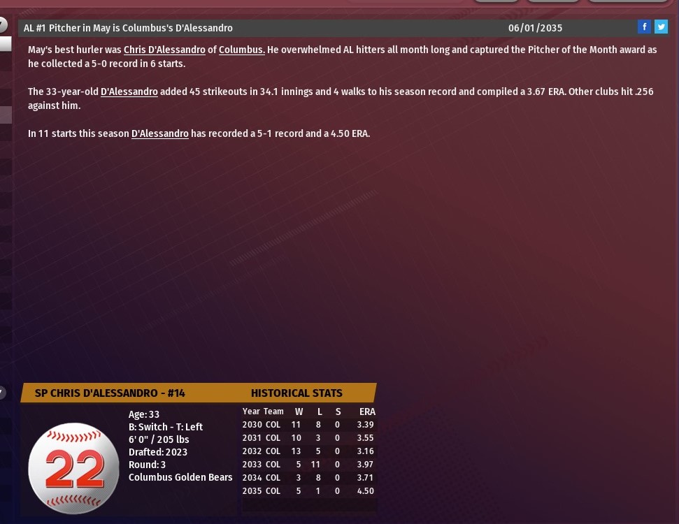 MBL news: June 1 -- Player and Pitchers of the Month for May